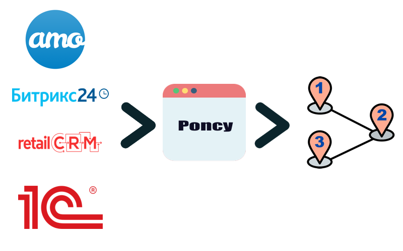 И специалисты нашей компании могут помочь Вам выстроить модель интеграции Вашей CRM с системой планирования маршрутов Poncy.