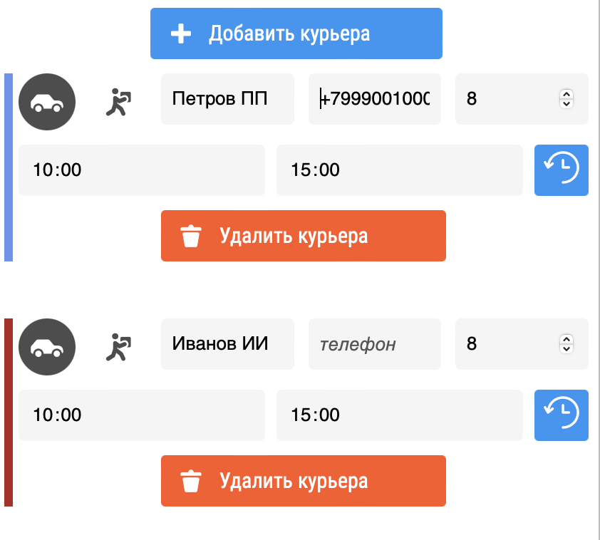 Благодаря алгоритму задействуются только те курьеры, которые нужны для выполнения задачи в данный момент. Сервис может построить маршрут для того количества работников службы доставки, которое, по его мнению, будет оптимальным в конкретном случае. Если Poncy считает, что с работой справится один курьер вместо двух, он сообщит об этом и построит маршрут с учетом своих рекомендаций. Если вам все же необходимо распределить задачу между несколькими исполнителями, вы можете ввести ограничения для каждого из них. Сервис построит маршрут для каждого курьера, но может увеличиться общий километраж.